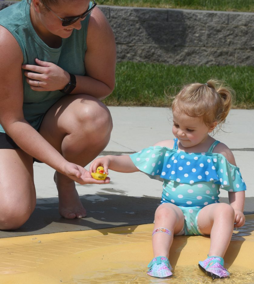 Josie’s mom, Jenna, said the Woleslagle family will come to the Splash Park until Labor Day, when the facility is scheduled to close for the season. Jenna, who also has a 10-month-old son, purchased a membership, which she recommends, especially for residents.