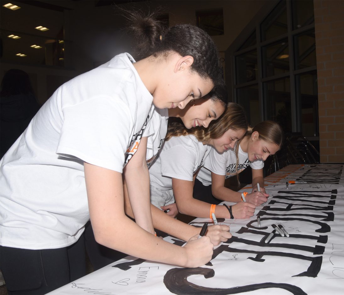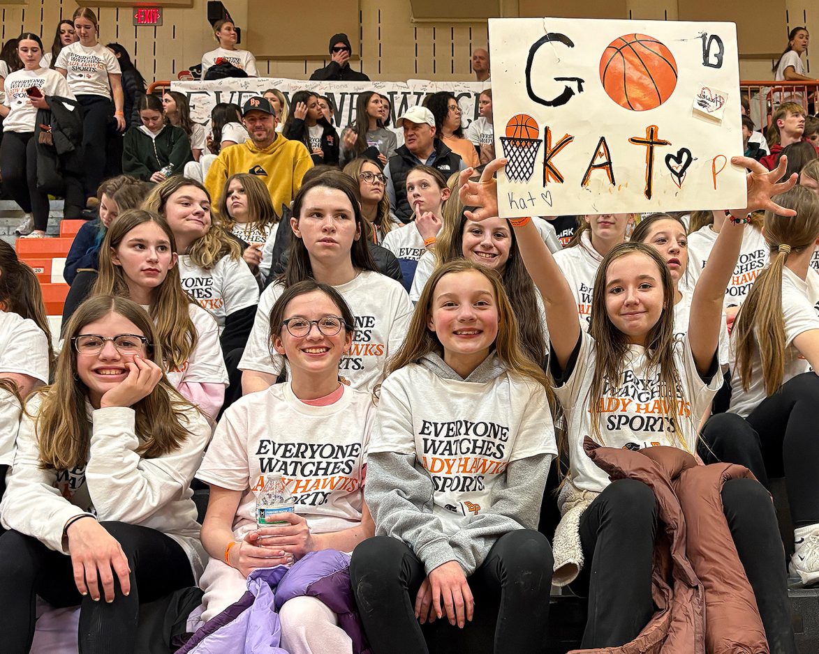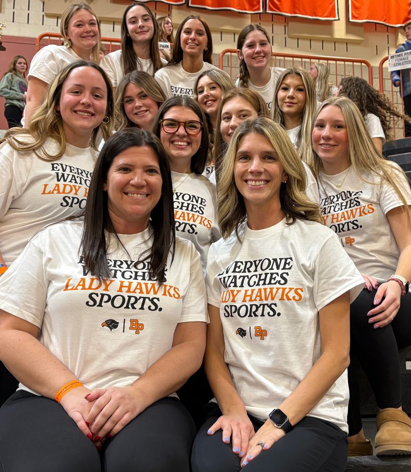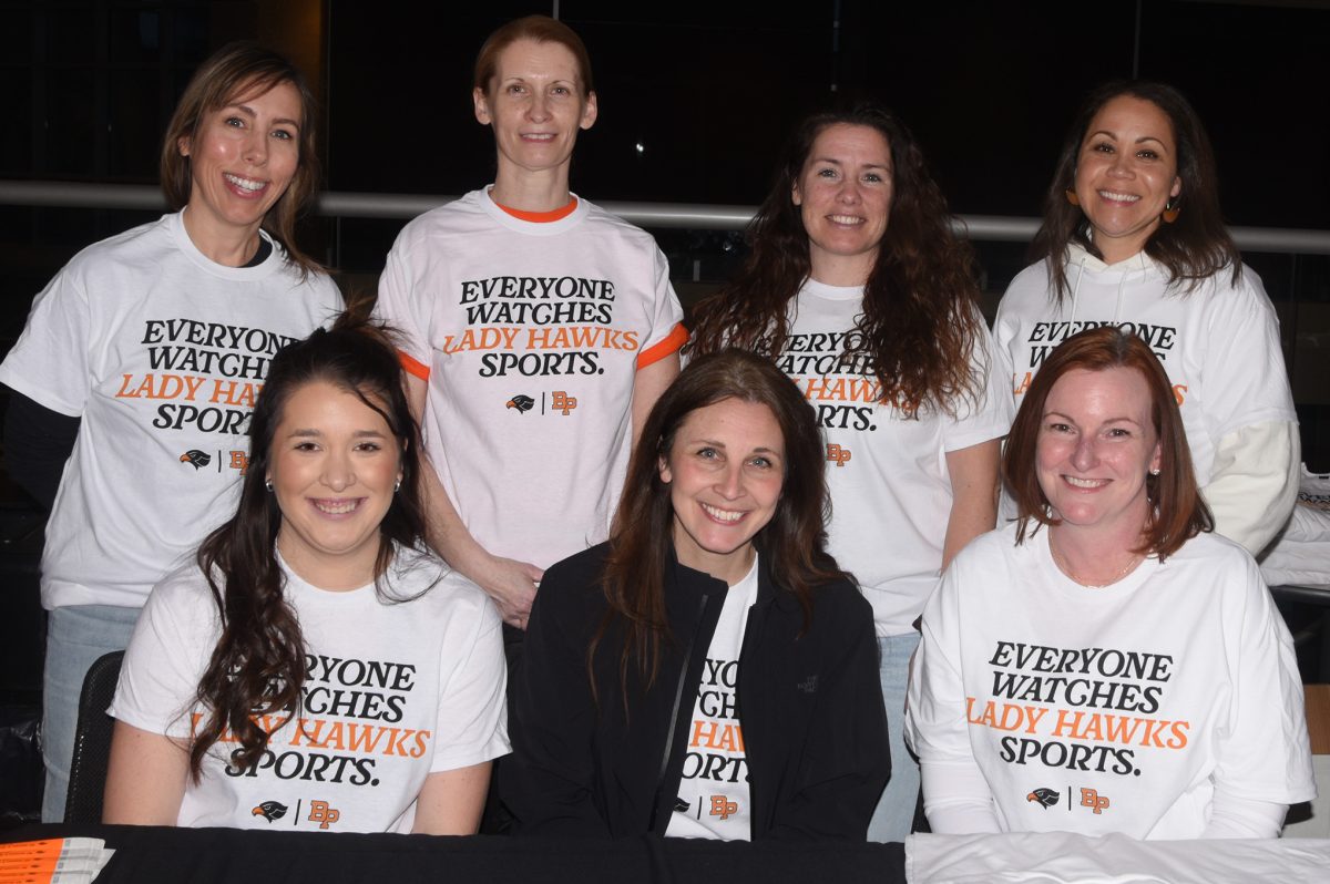 Upon arrival each guest – the coaches, boosters and student-athletes – received a commemorative white T-shirt with the words “Everyone Watches Lady Hawks Sports” printed on the front. Even the opposing team was decked out in similar shirts designed with the Lady Highlander name and logo.