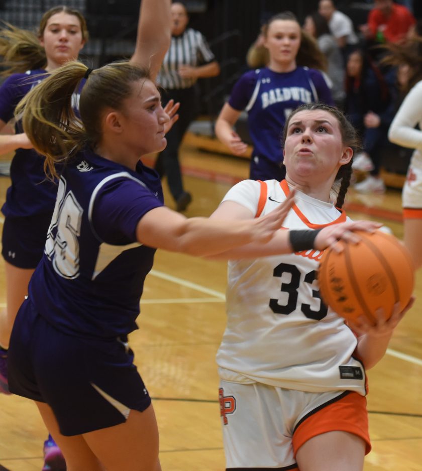 The game against the rival Lady Highlanders was the “perfect situation” to round up supporters of female athletics. Although the Lady Hawks suffered a defeat, 53-36, at the hands of Baldwin, the crowd of nearly 900 spectators applauded the efforts of the promoters.