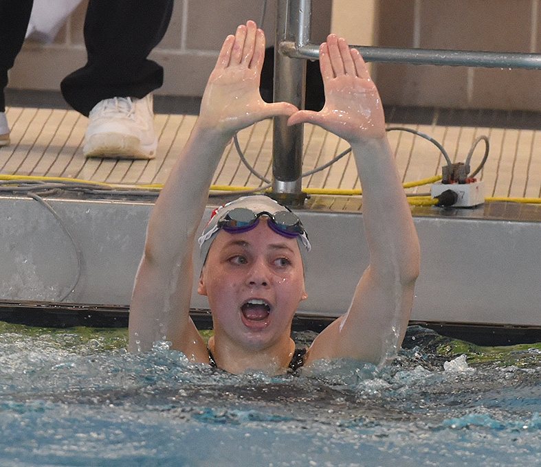 Miller won the 100-yard butterfly event. A freshman, who only started swimming three years ago, grabbed the gold by edging out Eva Ogden, a senior from North Allegheny, by five one-hundreds of a second. Miller’s winning time was 56.21