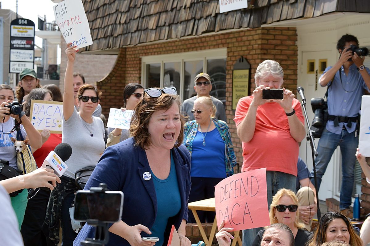 More than 100 people gathered outside U.S. Rep. Tim Murphy’s Mt. Lebanon office Sept. 6 to protest President Donald Trump’s decision Tuesday to end the Deferred Action for Childhood Arrivals – an Obama-era immigration policy better known as DACA.