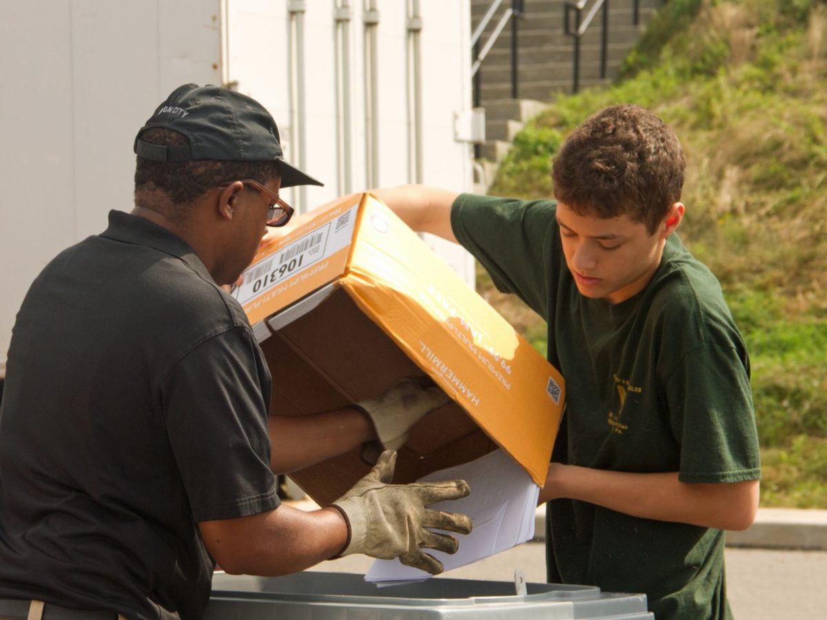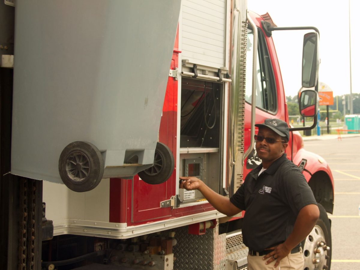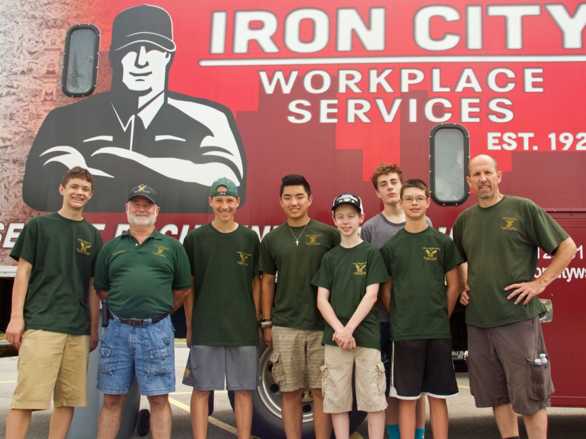 For two-plus hours, area residents had the opportunity to drop off materials that might contain sensitive information, with Boy Scouts from Troop 4 ready to unload boxes and bags full of paper into sizable bins. Then Kurt Burton and Mike Randall of Larimer-based Iron City Workplace Services took over, putting the bins on a mechanical lift to the top of their company’s on-site shredding truck, to be emptied and their contents converted to confetti.