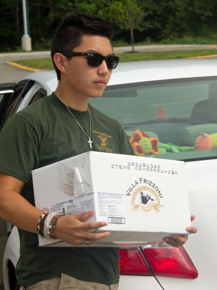 Scoutmaster Tom O’Brien of Troop 4, which meets at St Louise De Marillac Church in Upper St. Clair, brought half a dozen of his Scouts to help with the lifting.