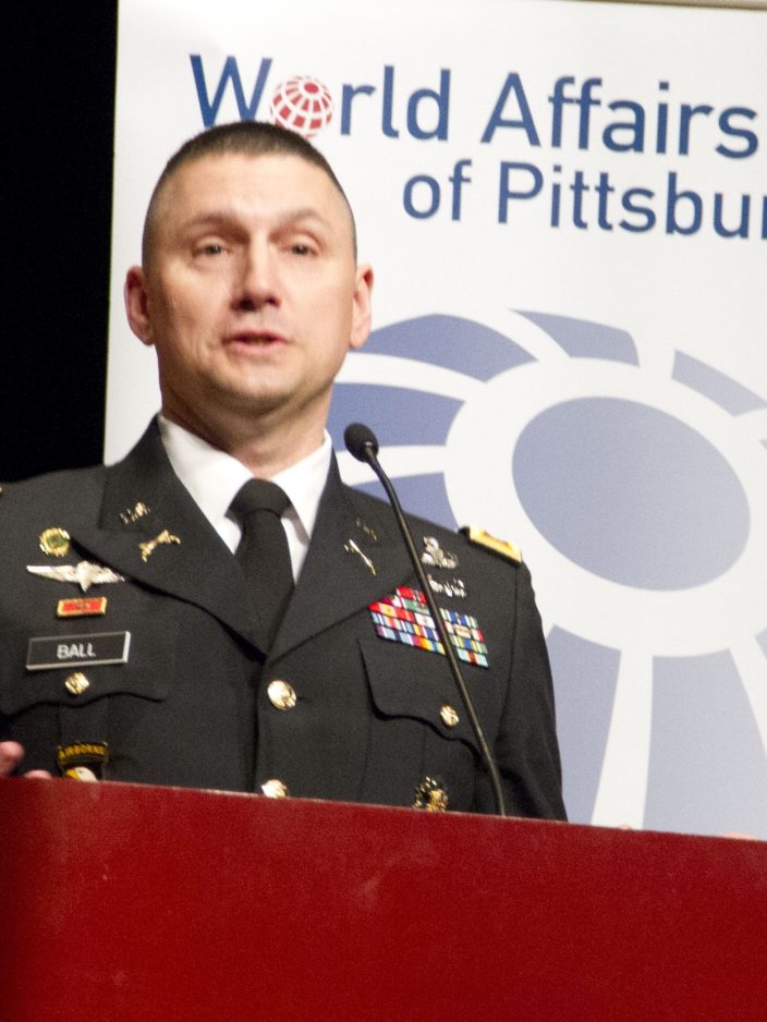 Thomas Asbery, Richard Ball, Michael Mierau and Matthew Strub were in Mt. Lebanon to lead a global issues seminar, presented by the World Affairs Council of Pittsburgh, a nonprofit organization that has promoted a deeper understanding of what occurs internationally since 1931. All four career officers attend the U.S. Army War College in Carlisle.