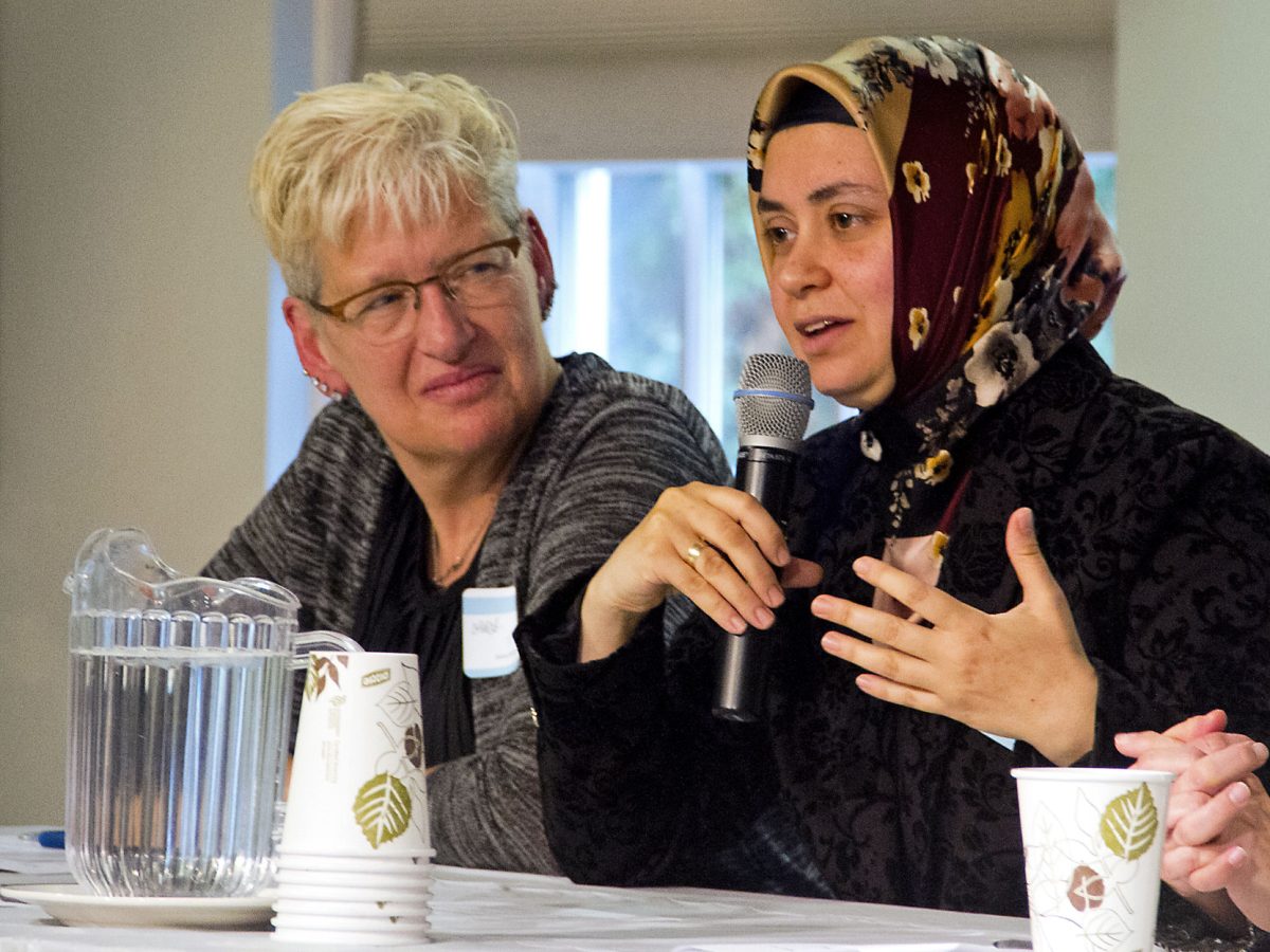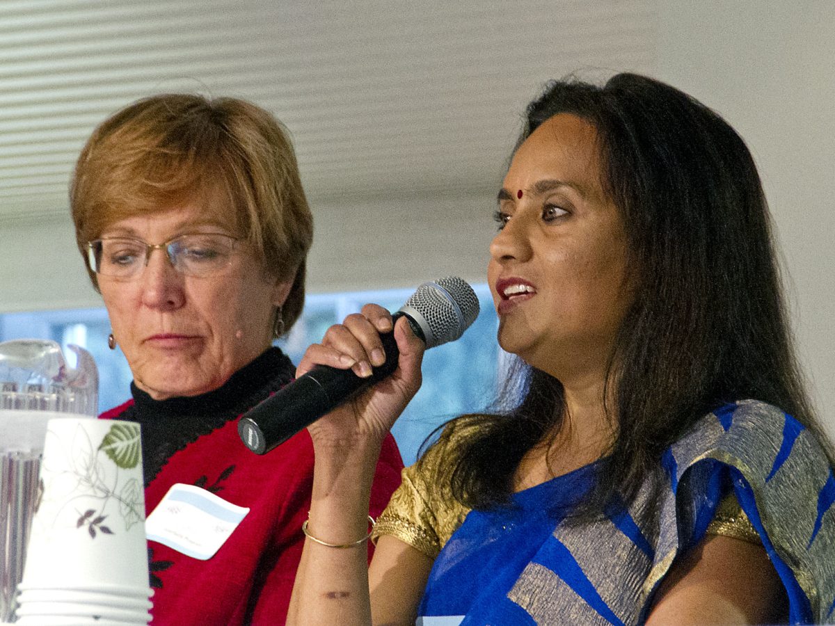 Lakshmi Gopi speaks about Hinduisum, as fellow panelist Lynne Aber listens.