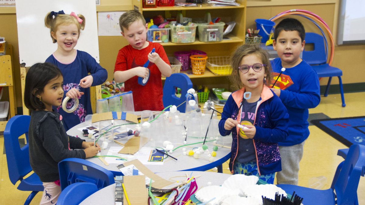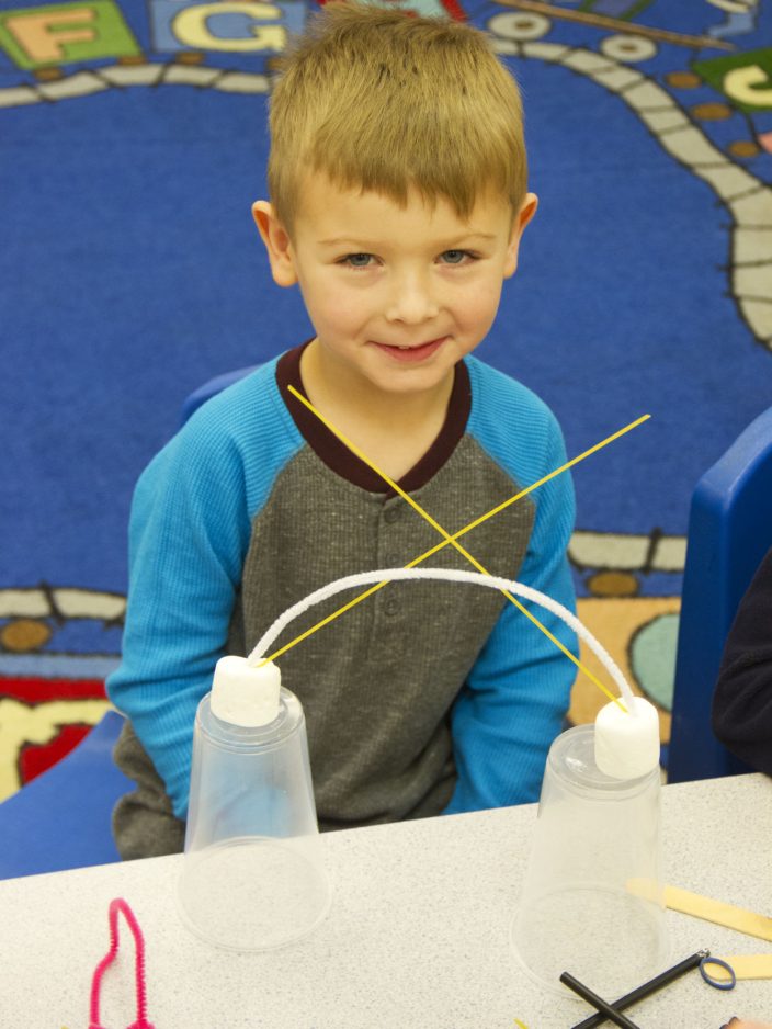 Plastic cups, straws, Q-tips, pipe cleaners, rubber bands and dried spaghetti noodles also served as construction materials as the children wrapped up a week of learning all about bridges in a special project to advance their understanding of STEAM, the subjects of science, technology, engineering, art and mathematics.
