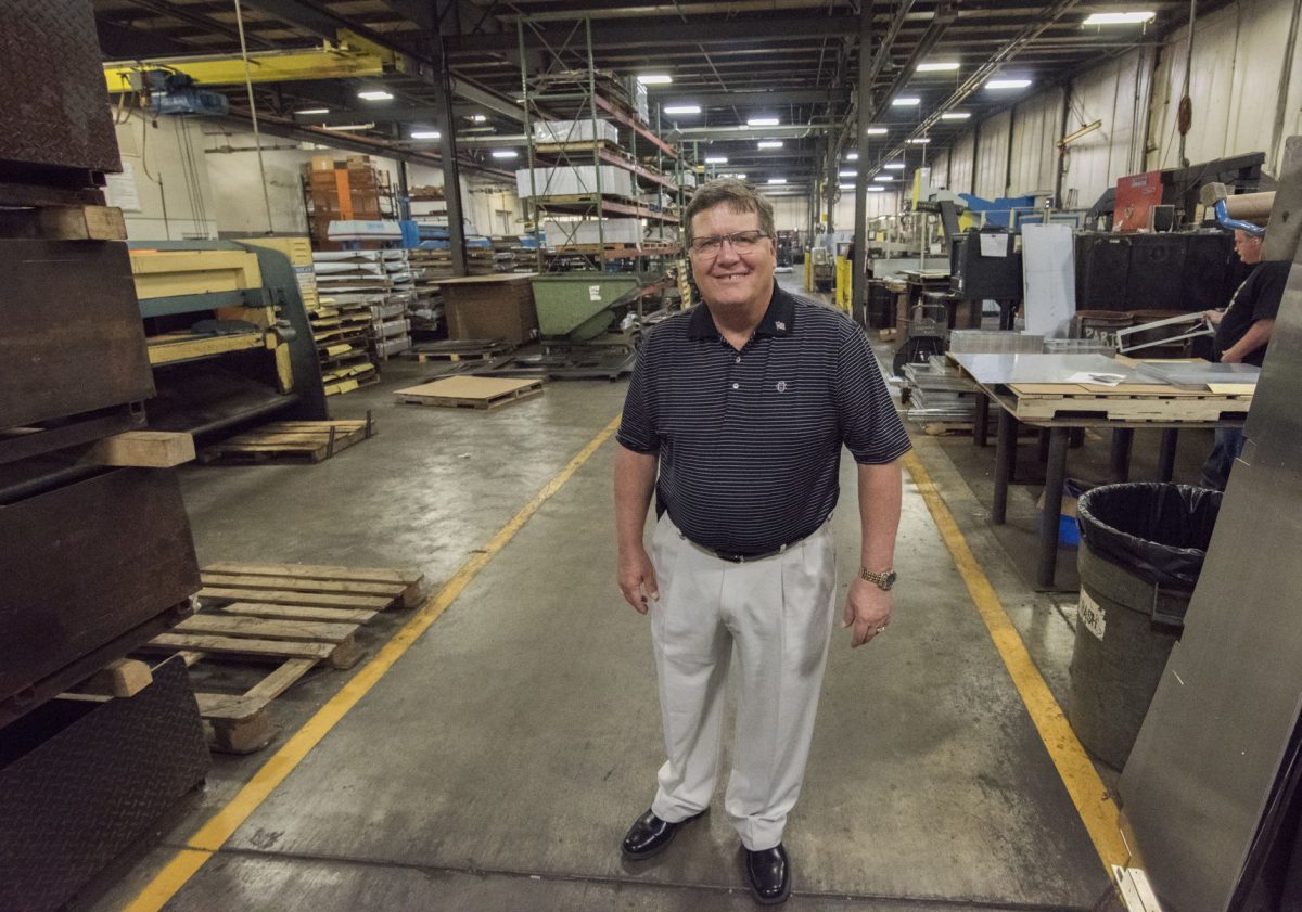 Marty Beichner, CEO of AccuTrex Products in Southpointe, stands in the machine shop at AccuTrex.