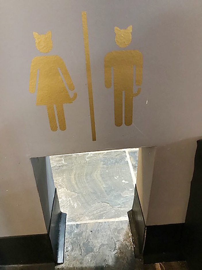A passageway where cats can exit the loft at the Colony Cafe and find their litter boxes.