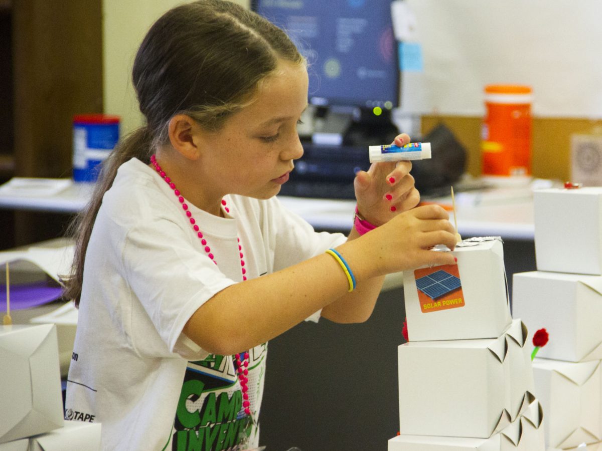 A Camp Invention participant works on her “Mod My Mini Mansion” project.