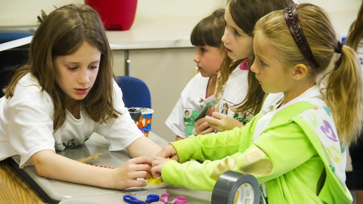 Students work on a Camp Invention project at Neil Armstrong Middle School.