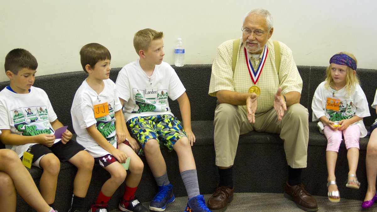 Alois Langer answers participants’ questions during Camp Invention at Neil Armstrong Middle School.