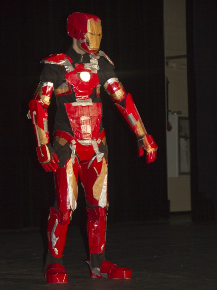 Going neither route was the cardboard that Josh Trombitas used to create the hit of the show: an Iron Man costume, looking like it was straight out of Marvel Comics.