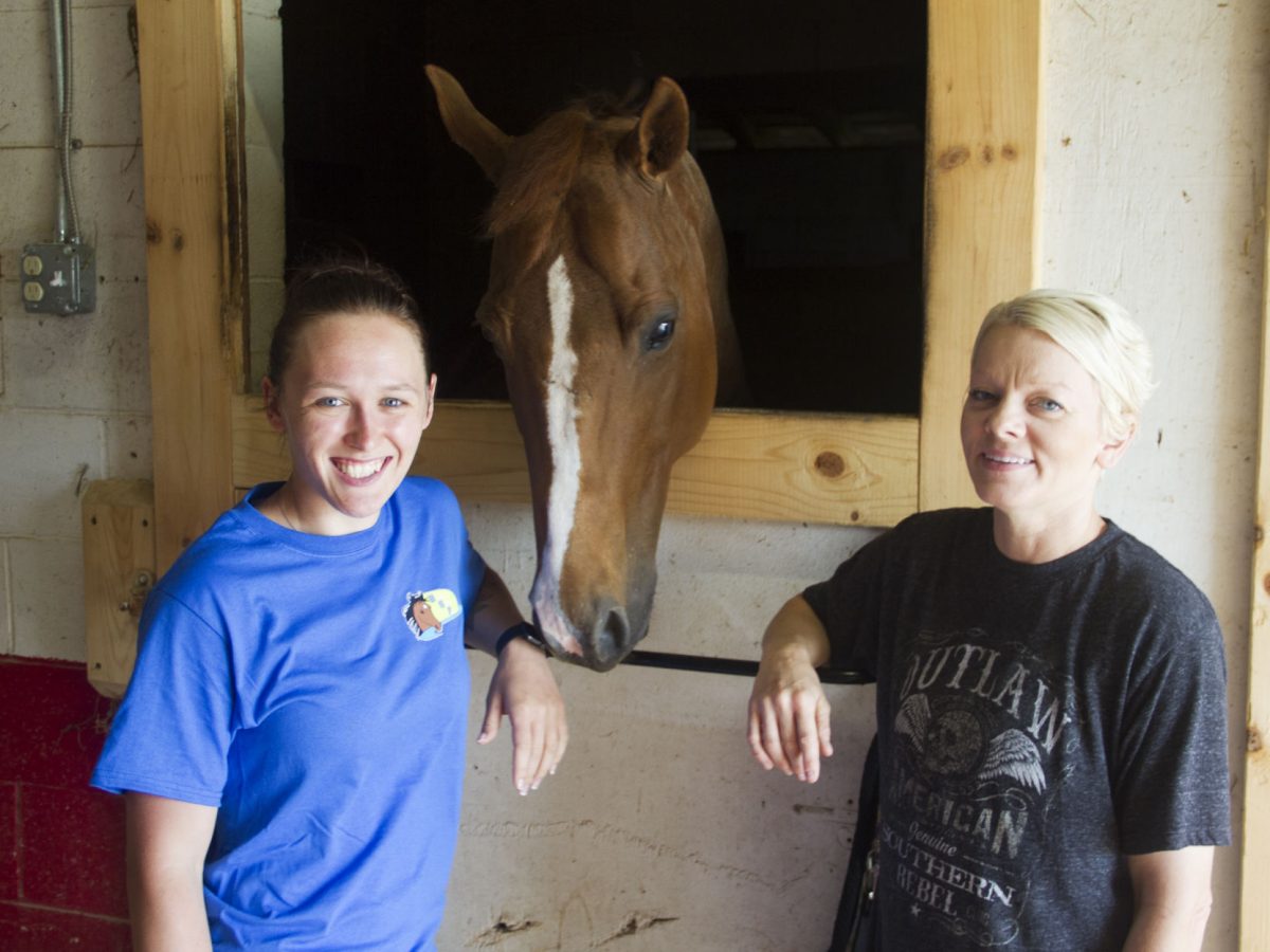 Despite her own flooding issues, Tammy Morran, right, welcomed Elizabeth Pagano’s horses to Saddle Brook Stables.