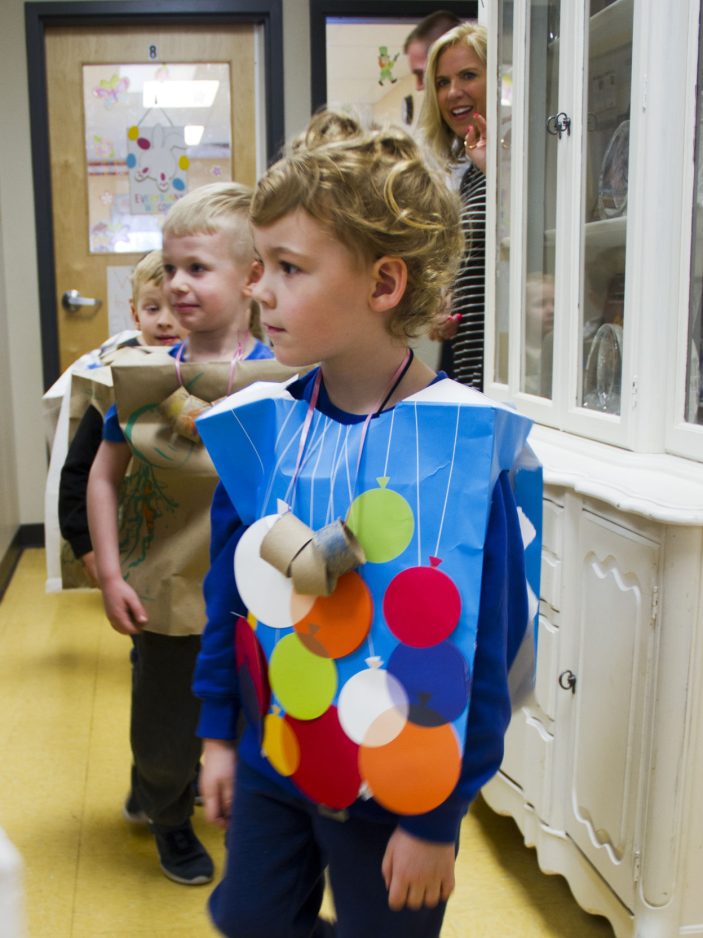 “In each classroom, they collected recyclables from their lunches, and then they started making outfits out of the them,” school director Haylee Larimer said. “They told their parents what was going on, and the parents participated by bringing in some recyclables from home, as well.”
