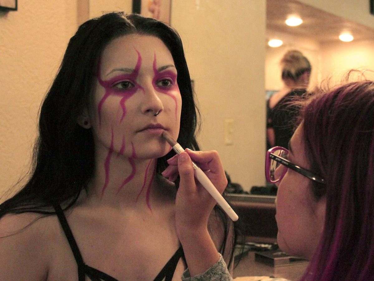 Gabrielle Pelletier applies makeup to Kate Yerke during a class at Tom Savini’s Special Effects Make-Up Program at Douglas Education Center in Monessen.