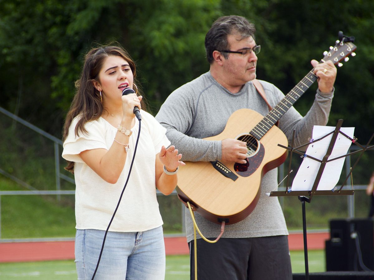 Anna and Sam Hazo perform “The Star-Spangled Banner” to launch the Relay for Life of Peters Township and Canon-McMillan.