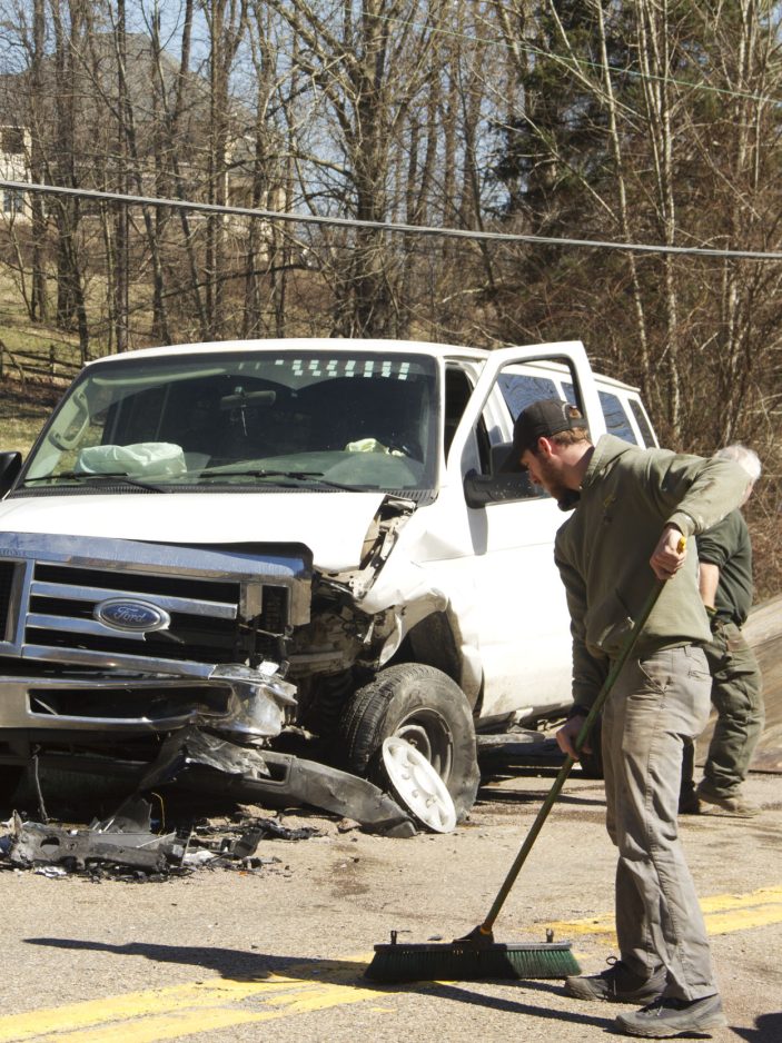 Cleanup takes place following a March 26 accident on Bebout Road in Peters Township.