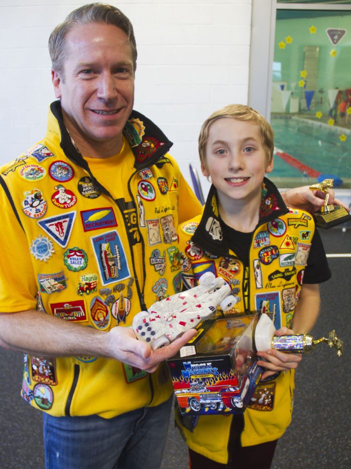 Race day features a series of competitions among six cars whizzing down a metal track, with an electronic display revealing the relative positions at the finish. When all was said and done, Brody Beinhauer of Peters Township and his dad, Brian, took the first-place trophy.