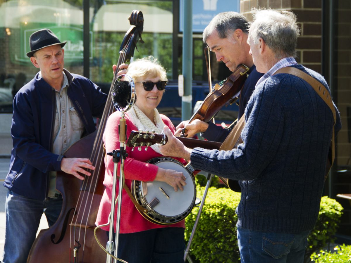 The Mackins perform bluegrass on the second Saturday of each month during the Mt. Lebanon Uptown Market season. From left are Dave Glasser, Wendy Mackin, Jack Mackin and John Mackin.