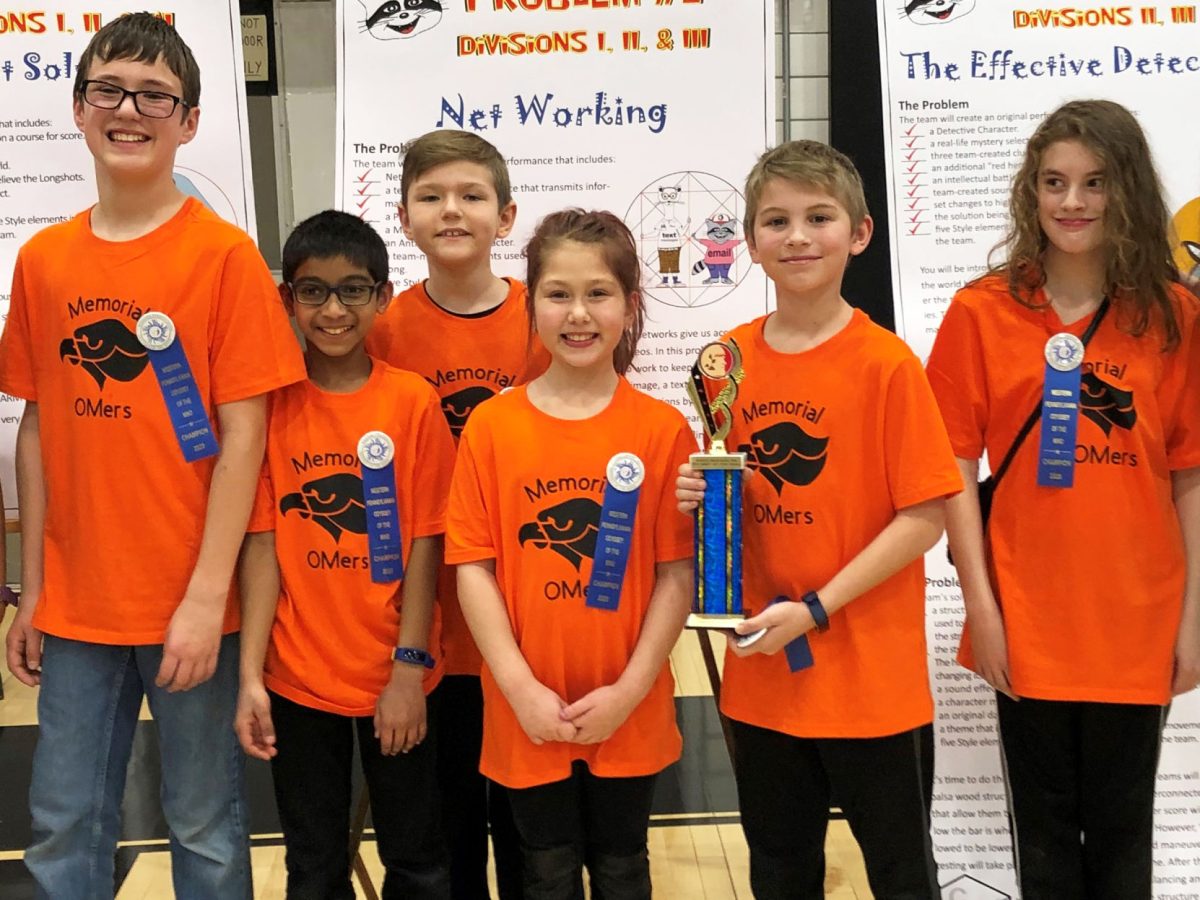 • A group of Memorial Elementary School students finished first in Division I, third through fifth grades, at the Western Pennsylvania Odyssey of the Mind competition, held March 7 at Keystone Oaks High School. They competed against 11 other teams.