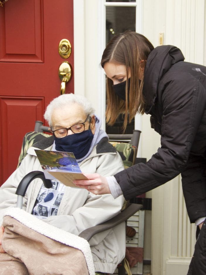 Meagan Truong of Mt. Lebanon shows a birthday card to her grandfather.