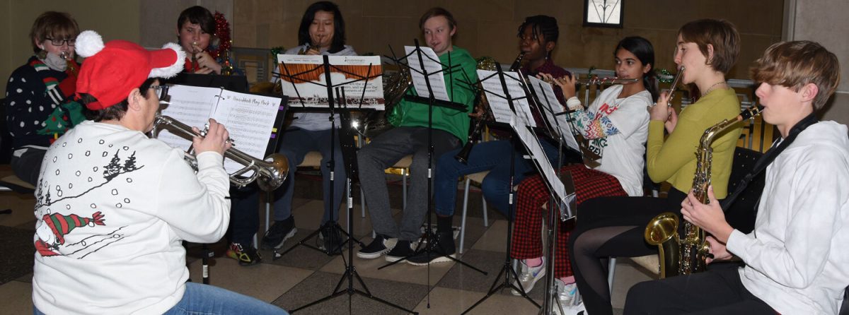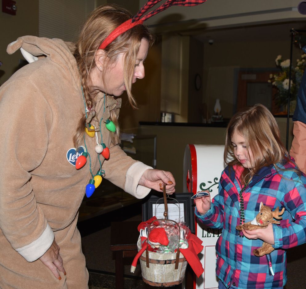 Seasonal music provided by members of the Southminster Handbell Choir and the Mt. Lebanon School District bands and carolers from the Salvation Army turned even hard-core Scrooges into holiday enthusiasts. Even the elves and animated reindeer put spectators in the Christmas spirit and proper mood for a visit from Old St. Nick. He arrived in style – in a fire truck – before taking his position on a red velvet throne, courtesy of Howard Hanna.