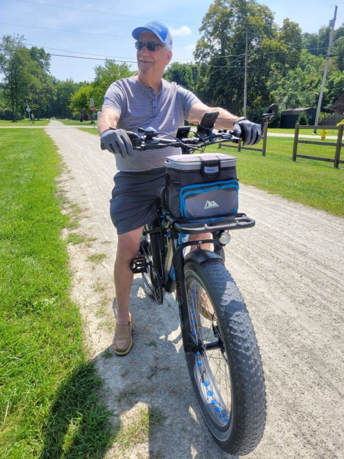 He has a second e-bike that he keeps at his vacation home in the Florida Keys, which helps him get around the island. Knopp recommends buying a bike with “fat tires” to help with rough or uneven surfaces. But he also suggested bringing a battery backup just in case a rider runs out of juice, like he did one time and had to pedal harder to get back to his starting point.