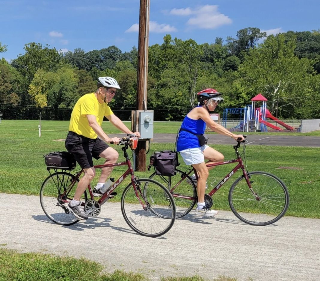Of course, not everyone is sold on e-bikes. Ken and Rosemary Marks of Whitehall were also spotted resting on the GAP in Whitsett, but both said they prefer to keep riding their regular bikes. Ken Marks admitted that e-bikes sound like “fun,” although he racked up 14,000 miles on his current bike since 2011, when he had a heart attack.