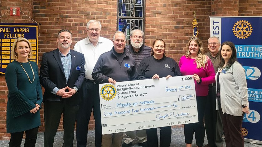 South West Meals on Wheels has received a $1,200 donation from the Rotary Club of Bridgeville-South Fayette.Representatives of the nonprofit organization, a self-sustaining program that receives no governmental funding, visited the club’s Feb. 10 meeting to be presented with a ceremonial ...