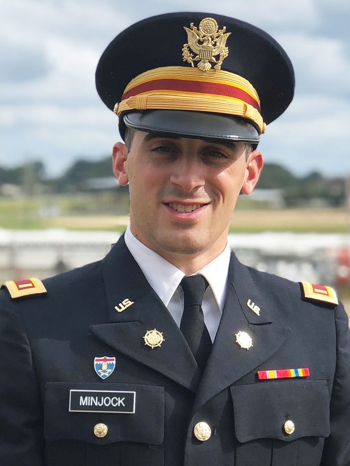 A 2014 graduate of Peters Township High School, Minjock played football and ran track in high school and holds a number of track records at Waynesburg. However, his ambition was always to join the military and become an officer, which he was able to achieve when he was commissioned on Oct. 23.