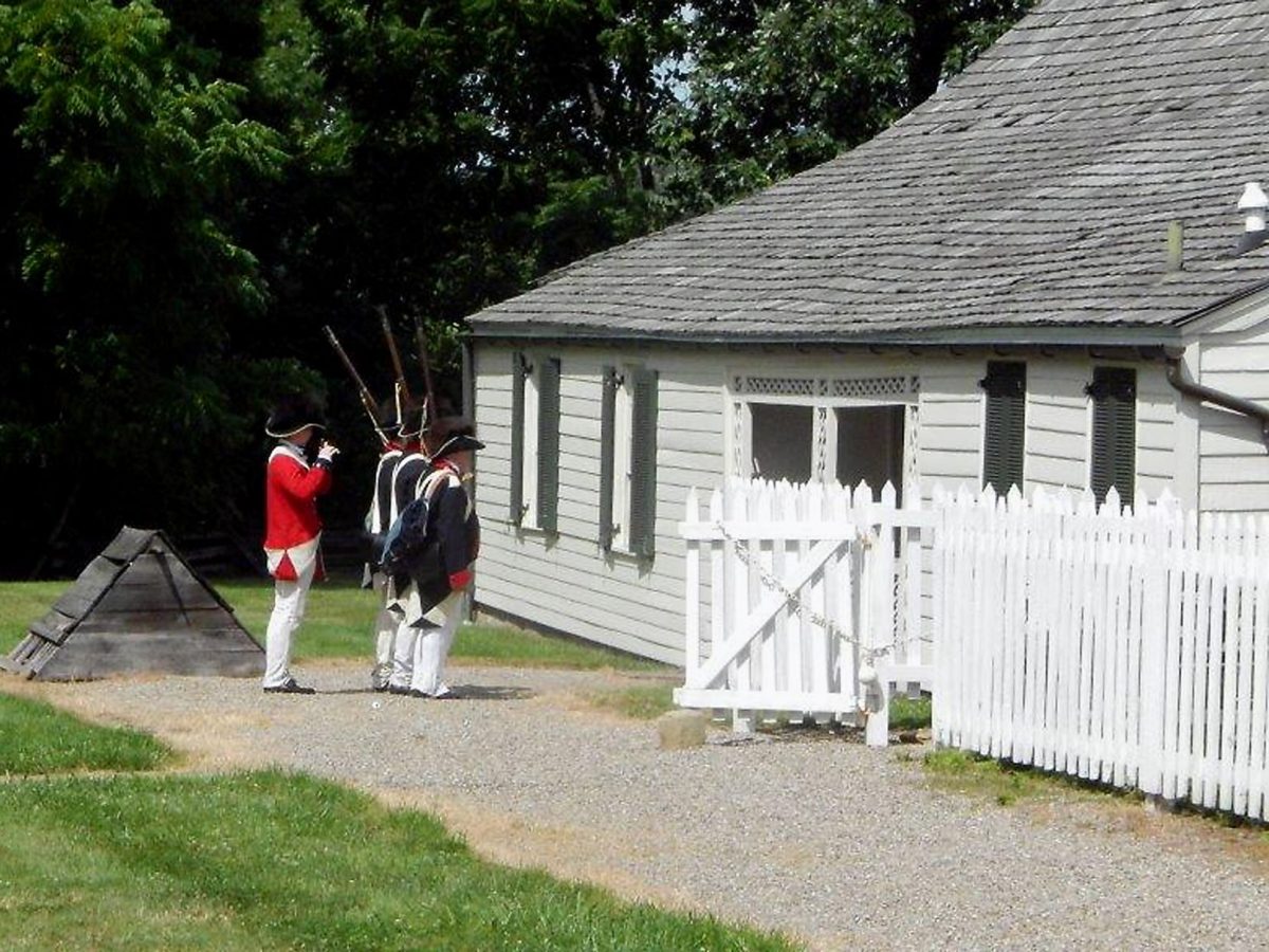 Re-enactors portraying soldiers stand guard at Woodville Plantation in Collier Township.