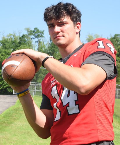 Drew Welhorsky, like many of his South Fayette football teammates, wears a green silicone bracelet on his left wrist. The wristband features four printed white letters, all capitalized Os.