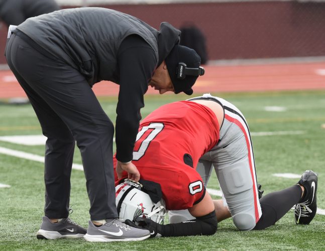 Peters Township’s hopes for the school’s first PIAA title in football ended when Aidan Grella kicked a 24-yard, walk-off field goal to lift Bishop McDevitt to victory, 31-28, in a state semifinal game played Nov. 28 at Mansion Park Stadium in Altoona.
