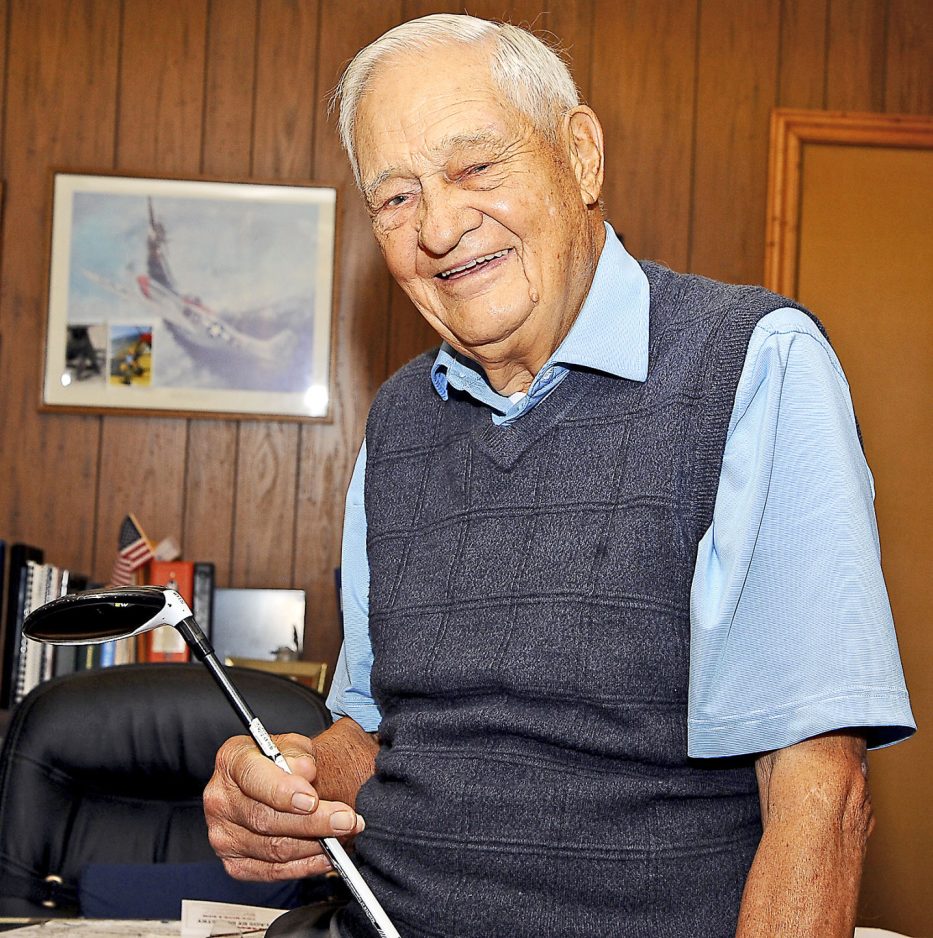 Peter Edwards Jr. relaxes in his office at Brookside Lumber only days after scoring a hole-in-one at St. Clair Country Club. The 97-year-old businessman has recorded four aces in his life.