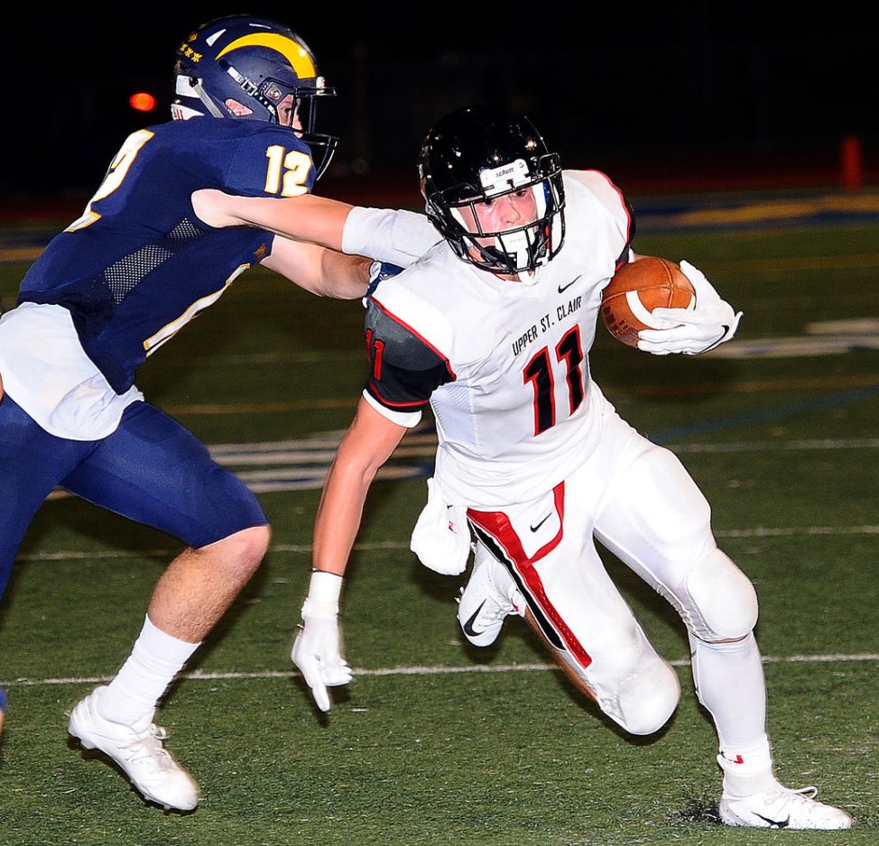 The brothers are David and Chris Pantellis. In USC’s 38-31 win last week against Chartiers Valley, David caught two touchdown passes. He also returned a punt 55 yards for another score. He had four receptions for 97 yards to raise his multi-purpose yards to 802. Chris had three grabs for 53 yards, giving him 902 all-purpose yards this season. Both have six touchdowns each.