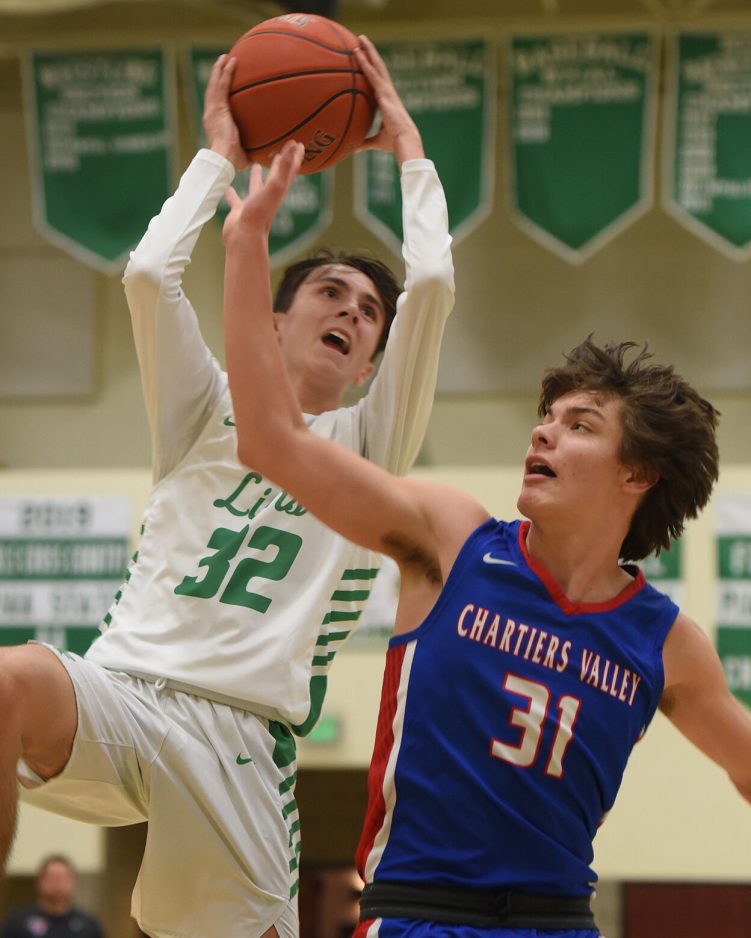 Chartiers Valley’s Jayden Davis, who recently joined the 1,000-point club, was held to 15 points, eight below his scoring average.