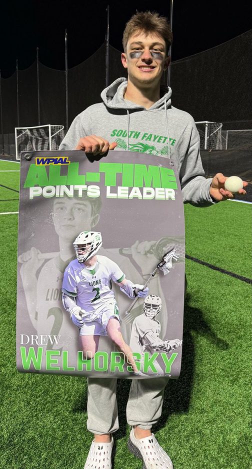 During a 19-7 victory at Seneca Valley on April 8, Welhorsky broke the WPIAL boys lacrosse career point record when he assisted on a goal by Jack Makar.