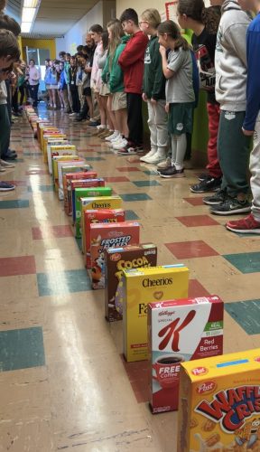 The school’s 323 students at the K-8 school brought in the cereal boxes, decorated them, set them up and watched them ...